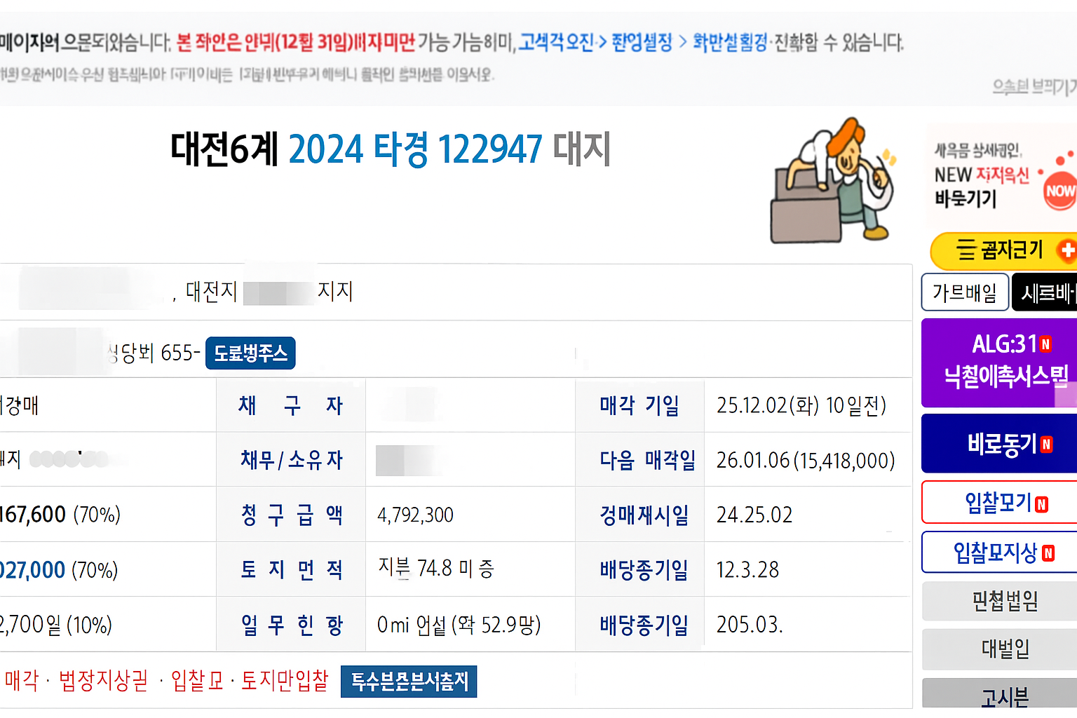 이번 입찰은 첫 회차에서 유찰되어 70% 가격으로 2회차 진행 예정이다.