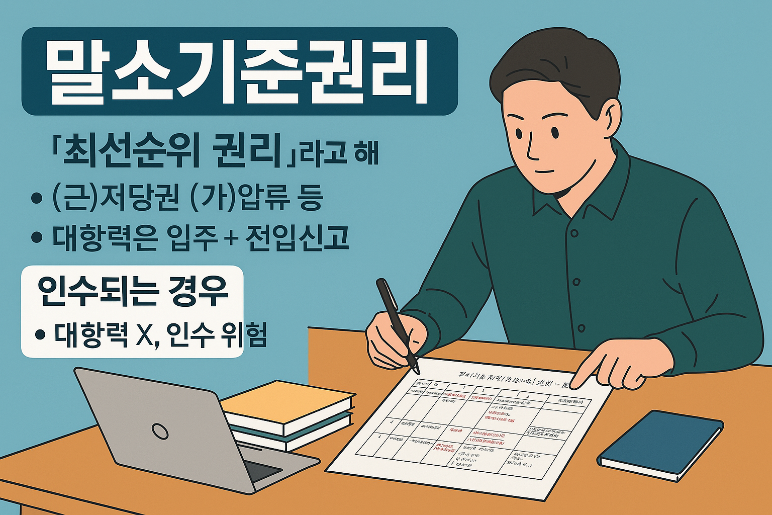 경매를 처음 공부하면 가장 먼저 듣게 되는 말이 있습니다. 바로 “말소기준권리”입니다. 정식 용어로는 “최선순위 권리”라고 부르죠. 경매 등기부를 볼 때 “어디까지 권리가 지워지고, 어디부터 살아남는가”를 결정하는 기준이 됩니다.