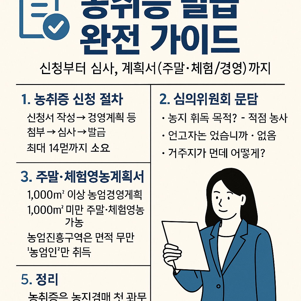 농취증 발급 완전 가이드 — 신청부터 심사, 계획서(주말·체험/경영)까지